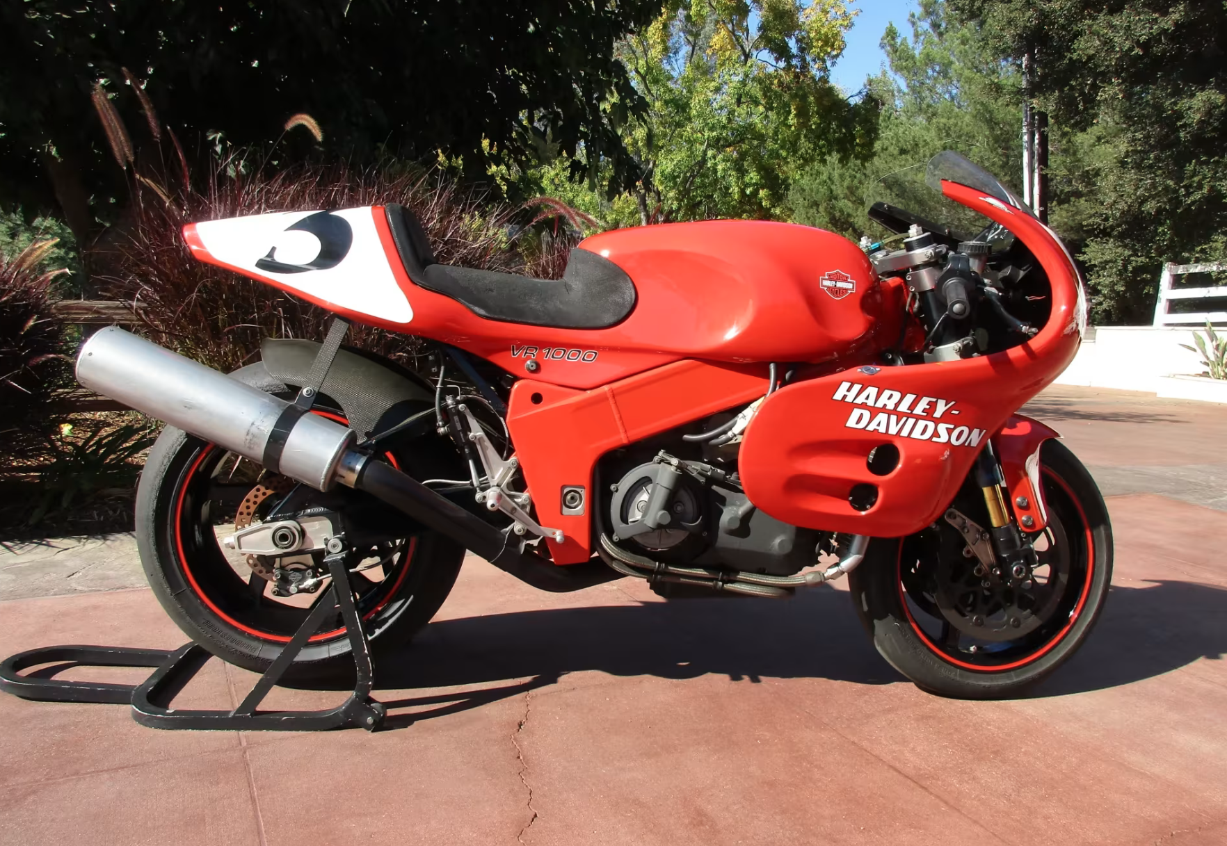 While, finally, if we’re talking about an American auction of significant racing machines, there’s possibly no more significant, rare and desirable American racing machine than Harley-Davidson’s short-lived VR1000. Built to compete in AMA superbikes and, ultimately, world superbikes, it was an all-new, road-legal, homologation special.